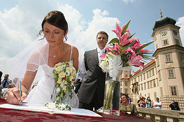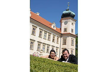 Užitečné informace pro Vás: Svatební obřady na zámku se konají od února do listopadu. Úřední dny správy zámku jsou úterý a středa, po předchozí domluvě se slečnu Váňovou (viz níže). Cena za pronájem svatebního sálu je 7.000, příplatek za vpuštění do interiérů za účelem focení je 500 korun. Tuto možnost určitě doporučujeme, cena našeho focení zůstává stejná. Novomanželské portréty fotíme dále na nádvoří a zámecké zahradě.